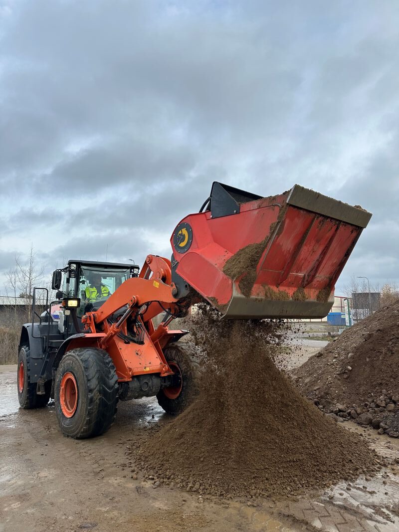 På återvinningsanläggningen i Kallinge sitter företagets ALLU DS 4-17, TS16 (TS32) för dagen monterad på en Hitachi ZW 250, en hjullastare i 20tons-klassen, men den passar lika bra på en större grävmaskin då den är utrustad med kombifäste som förutom stora BM också innehåller S70/S80. Maskinen rattas för dagen av Thomas Ottesen som arbetat med återvinning och framtagning av material i mer än 20 år. Han visar oss runt på den välorganiserade anläggningen där alla material ligger i ordning och reda, vare sig de väntar på att bearbetas eller väntar på att transporteras ut till kunder. Thomas Ottesen har bara kört med skopan ett litet tag, men tycker den var enkel att lära sig använda och han uppskattar särskilt flexibiliteten.