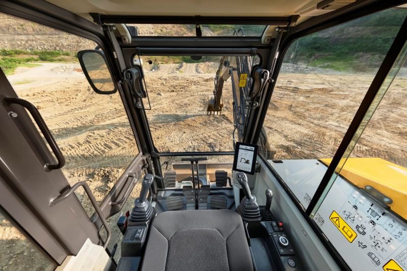 Dessa minigrävare har dessutom en helt förnyad hyttmiljö som är utformad för att föraren ska kunna arbeta bekvämt, säkert och effektivt hela dagen. En högupplöst pekskärm erbjuder praktiska funktioner som förinställningar för redskap, kameravyer i sidled och bakåt, inställningar för serviceintervaller och Bluetooth®-parkoppling.